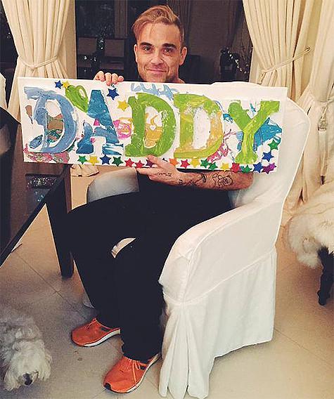 А уже на следующий день певец поделился другой фотографией. На ней Робби держит в руках красочный самодельный плакат со словом «Папочка». «Мой самый лучший подарок на день рождения», — признался музыкант в подписи.