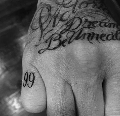 Дэвид Бекхэм похвастался в «Инстаграм» своей очередной татуировкой. Отныне на мизинце правой руки знаменитого экс-футболиста красуется число «99».