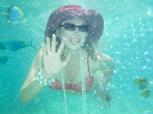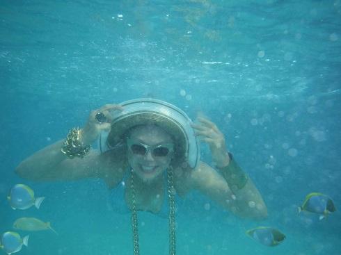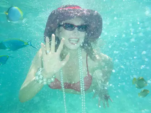 Лена Ленина: «Самое трудное во фридайвинге — не только удержать дыхание на более долгое время, но и не потерять шляпу. Если вы умеете нырять в шляпе, научите меня! У меня она постоянно слетает. Но заходить в море или выходить из него под палящим солнцем, рискуя обгореть лицом и боясь морщин, я не хочу, поэтому главная моя сложность при фридайвинге — не остаться без головного убора. Вторая сложность дамского фридайвера — постоянная потеря любимых украшений. Однажды я тщетно ныряла до захода солнца в надежде отыскать мой золотой браслет с изумрудами. А недавно отдала дань греческому морскому богу Посейдону бриллиантовой сережкой. Если он все мои сокровища не забрал, то по моим фридайверским местам могли бы ходить металлоискатели».