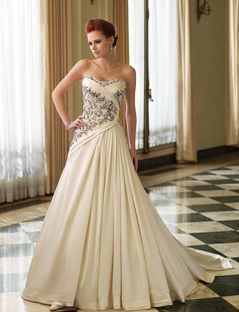 Весьма актуальны контрастные аксессуары — пояса, банты, броши. В прошлое уходят классические пастельные тона и кипельно белый себе цвет. Впрочем, если невеста, как Алла Пугачева, сама себе тенденция, наряд должен быть из ряда вон выходящим. Не как у всех. Например, длинный «фирменный балахон» холодного красного цвета, и вместо фаты — венок из огромных алых роз в форме кокошника. И обязательно прямые волосы! Сергей Сысоев считает, что такой смелый образ может позволить себе только настоящая русская звезда.