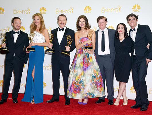 Безоговорочным триумфом церемония стала для сериала «Во все тяжкие»: награды сразу в пяти номинациях, в том числе и в категории «Лучший драматический сериал». Исполнитель главной роли актер Брайан Крэнстон стал «Лучшим актером драматического сериала», обойдя в этой категории Мэттью Макконахи и Вуди Харрельсона («Настоящий детектив»), Кевина Спейси («Карточный домик») и Джона Хэмма («Безумцы»). А лучшими актером и актрисой второго плана стали коллеги Брайана по съемочной площадке Аарон Пол и Анна Ган. Кроме того, сериал был отмечен в категории «Лучший сценарий». Лучшей актрисой в драматическом сериале стала Джулианна Маргулис («Хорошая жена»), получившая за эту работу уже вторую статуэтку «Эмми».