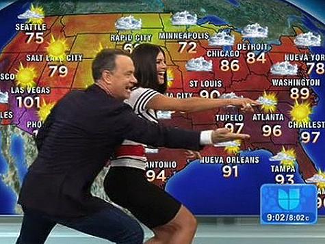 Зрители американского испаноязычного телеканала Univision были изрядно удивлены, когда в 2010 году в эфире утреннего шоу прогноз погоды вышел объявлять Том Хэнкс. Не говорящий по-испански актер попросил включить ему музыку, и затем весело приплясывая вместе с ведущей Чикинкирой Дельгадо начал на чистом английском рассказывать о надвигающихся осадках и температуре воздуха в том или ином городе. Прогноз погоды в тот раз мало кто услышал, но зрители и авторы шоу по достоинству оценили танец кинозвезды.